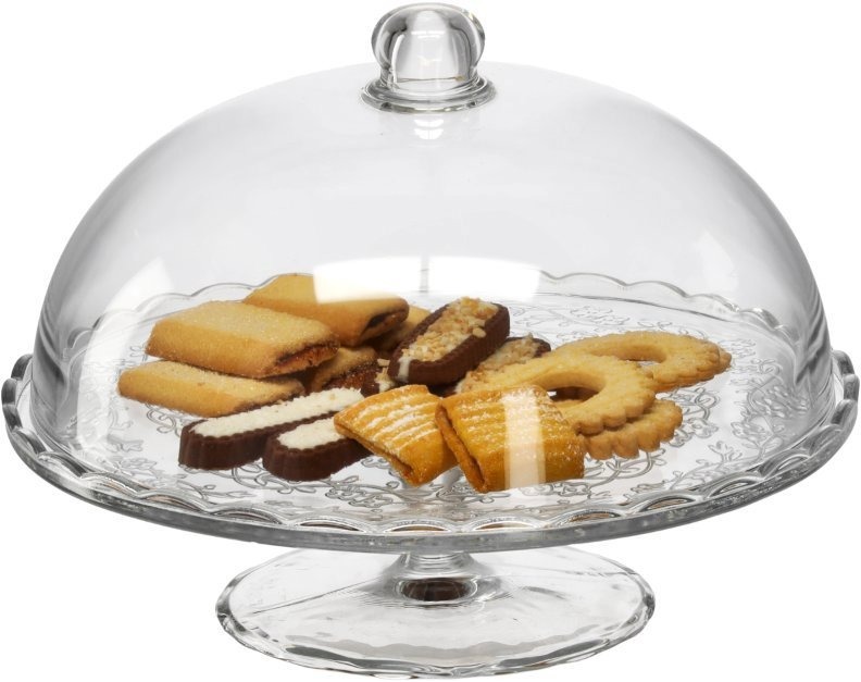 Etažér – 1patrová, na noze, s víkem, odolná proti poškrábání, transparentní barva, rozměry 21 × 29 × 29 cm (V׊×H)