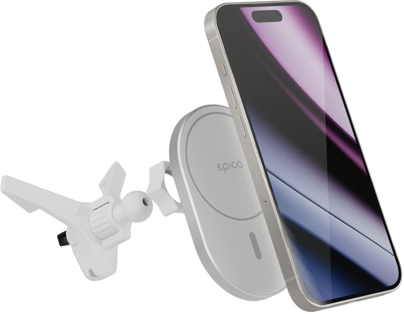 Držiak na mobil – do auta, Qi/Mag. Safe nabíjanie, výkon 15 W, do ventilácie, polohovací, otočný kĺb súčasťou, biela farba Nabíjací magnetický držiak na mobilný telefón Epico Ellipse Wireless Car Charger – Mag. Safe compatible. Zháňate moderný nabíjací…