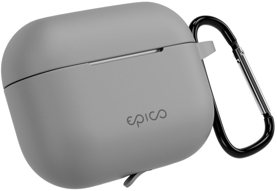 Puzdro na slúchadlá AirPods Pro 3 – karabína a kompatibilné s bezdrôtovým nabíjaním, materiál silikón, sivá farba Epico Silicone Cover na AirPods Pro 3Silikónové puzdro s karabínou na štýlovú a bezpečnú ochranu AirpodsSilikónové puzdro Epico poskytuje spoľahlivú ochranu pre vaše AirPods Pro 3. Je vyrobené z odoln