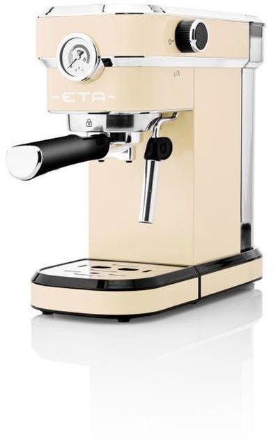 Pákový kávovar – príkon 1350 W, tlak 20 bar, pretlakový portafilter, objem nádržky na vodu 0,75 l, automatické vypnutie, možnosť prípravy dvoch šálok naraz, prídavný šľahač mlieka, regulácia hustoty mliečnej peny, nahrievanie šálok, nastavenie intenzity/množstva kávy, rozmery 30 × 16,5 × 41,5 cm (V׊×H), hmotnosť 3,65 kg Pákový kávovar ETA Storio 6181 90040Pre všetkých milovníkov kávy a štýlových retro kúskov je pripravený kvalitný pákový kávovar na mletú kávu ETA Storio. Slim vyhotovenie z nehrdzavejúcej ocele vám um