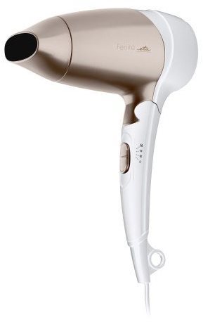 Fén na vlasy – cestovný, príkon 1200 W, studený vzduch, 2 rýchlosti, možnosť nastavenia 3 rôznych teplôt, s koncentrátorom, pútko na zavesenie súčasťou, dĺžka prívodného kábla 1,6 m, hmotnosť 400 g, biela farba Fén ETA Fenité 6320 90020Či sa nachádzate doma alebo na cestách, majte vždy pri ruke cestovný fén ETA Fenité 6320, ktorý sa perfektne postará o vaše vlasy. Vďaka možnosti sklopenia držadla je ideálny