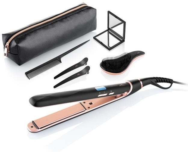 Žehlička na vlasy – keramický povrch doštičiek, šírka doštičiek 25 mm, 9 teplotných stupňov, doba nahriatia 120 s, rýchle nahrievanie, automatické vypnutie, svetelná signalizácia, LED displej, príkon 45 W, dĺžka prívodného kábla 1,69 m, pútko…