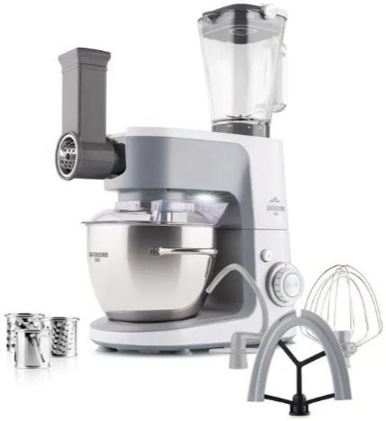 Kuchynský robot Eta Gratussino – planetárne hnetenie, príkon 1200 W, kovové vnútorné prevody, plastový plášť, materiál misy nerez, objem misy 4,5 l, plynulá regulácia otáčok, tlačidlo PULSE, s bezpečnostnou poistkou, funkcie šľahanie, miesenie a hnetenie,…