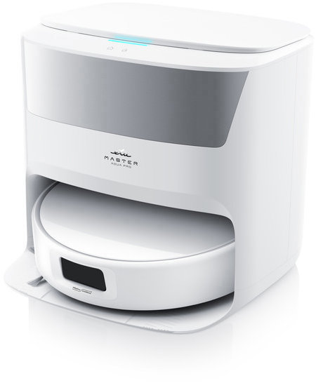 Robotický vysávač s mopom – pre alergikov, na zvieracie chlpy a antibakteriálny, na všetky druhy podláh, na suché a mokré čistenie, HEPA, automatické dobíjanie, senzor proti nárazu, pokračovanie upratovania po samostatnom dobití, vysávanie viacerých miestností, predvoľba miestností na upratovanie, prispôsobenie povrchu podlahy, časový rozvrh upratovania, hovoriaci po česky a automatické čistenie mopovacích návlekov, kefy odolné proti namotávaniu vlasov, ovládanie mobilnou aplikáciou, plastová zberná nádoba, 1 bočná kefa, prekoná prekážky do výšky 1 cm, laserová navigácia, doba prevádzky 240 min, doba nabíjania 6 h, hlučnosť 75 dB, rozmery 10,5 × 34,9 × 34,9 cm (V׊×H), nabíjacia stanica súčasťou balenia Robotický vysávač ETA Master Aqua Pro 7229 90000Robotický vysávač 4 v 1 s rotačnými mopmi, automatickým dávkovaním čistiaceho prostriedku, praním a sušením mopov horúcim vzduchom (až 45 °C) a detekcio