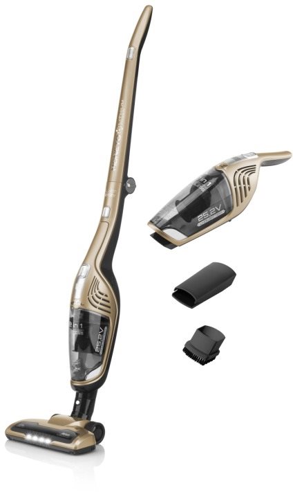Tyčový vysávač – 2 v 1, bezvreckový, aku, na koberce, tvrdé podlahy, linoleum a plávajúce podlahy, na suché čistenie, na Li-Ion batérie, doba chodu 50 min, doba nabíjania 5 h, LED kontrolky stavu nabitia batérie, LED osvetlenie, sklopná rukoväť a svetelné kontrolky, typ motora DC, hlučnosť 83 dB, plastová zberná nádoba s objemom 0,55 l, ovládanie na tele, rozmery 115,5 × 27 × 17 cm (V׊×H), hmotnosť 3,6 kg, zlatá farba Tyčový vysávač ETA bude vašou pravou rukou na pohodlné upratovanie domácnosti. Hravo zvládne povrchy ako koberce, tvrdé podlahy, linoleum a plávajúce podlahy. Jeho maximálna hladina hluku v prevádzke