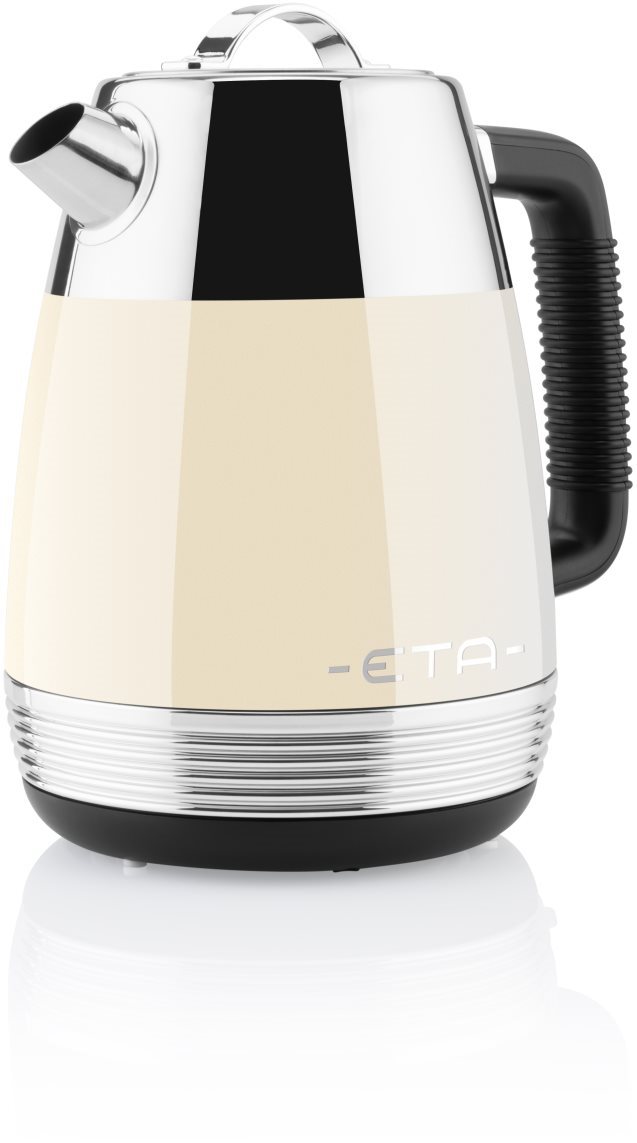 Rýchlovarná kanvica – retro dizajn, antikorová, objem 1,7 l, béžová, čierna a strieborná farba, príkon 2150 W, filter, skrytá špirála a úložný priestor na kábel, automatické vypnutie, tepelná poistka, ukazovateľ vodnej hladiny, vyberateľný filter Dizajnová rýchlovarná kanvica ETA Storio Retro Objavte krásu retro štýlu vo svojej kuchyni a kúpte si rýchlovarnú kanvicu z nehrdzavejúcej ocele ETA Storio Retro, ktorá nielen rýchlo, ale aj úsporne