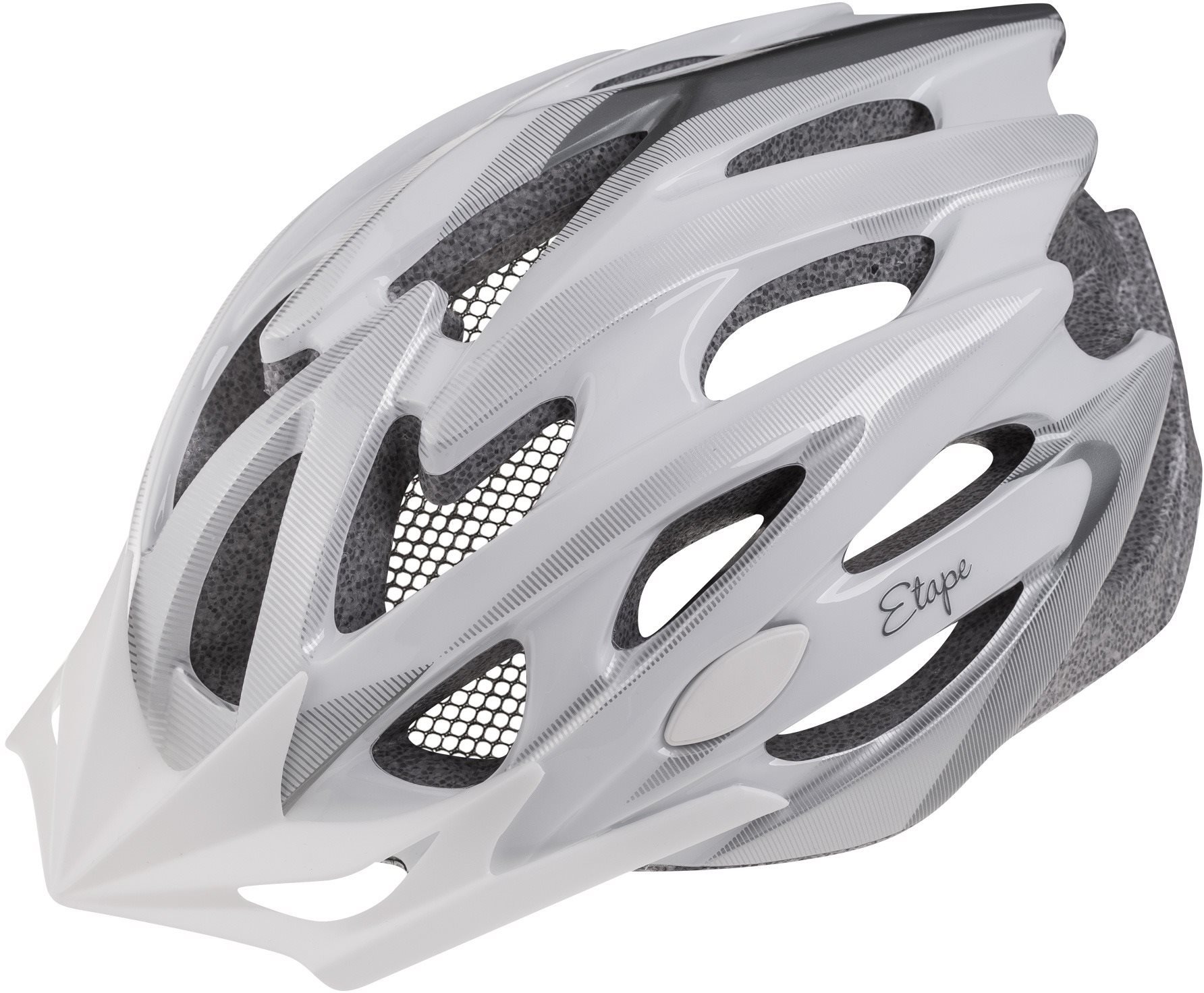 Prilba na bicykel – dámska, cestná, veľkosť L a XL na obvod hlavy od 58 do 61 cm, remienok s prackou na zapínanie, 25 ventilačných otvorov, certifikácia EN 1078 +A1, materiál konštrukcie ABS, reflexné prvky, vypchávky, otočné koliesko na nastavenie veľkosti, odnímateľný šilt, biela a strieborná farba Dámska cyklistická prilba Etape Venus je navrhnutá tak, aby poskytla spoľahlivú ochranu a pohodlie pri každej jazde. Robustná konštrukcia HardShell zaisťuje vysokú odolnosť voči nárazu, pričom hmotnos