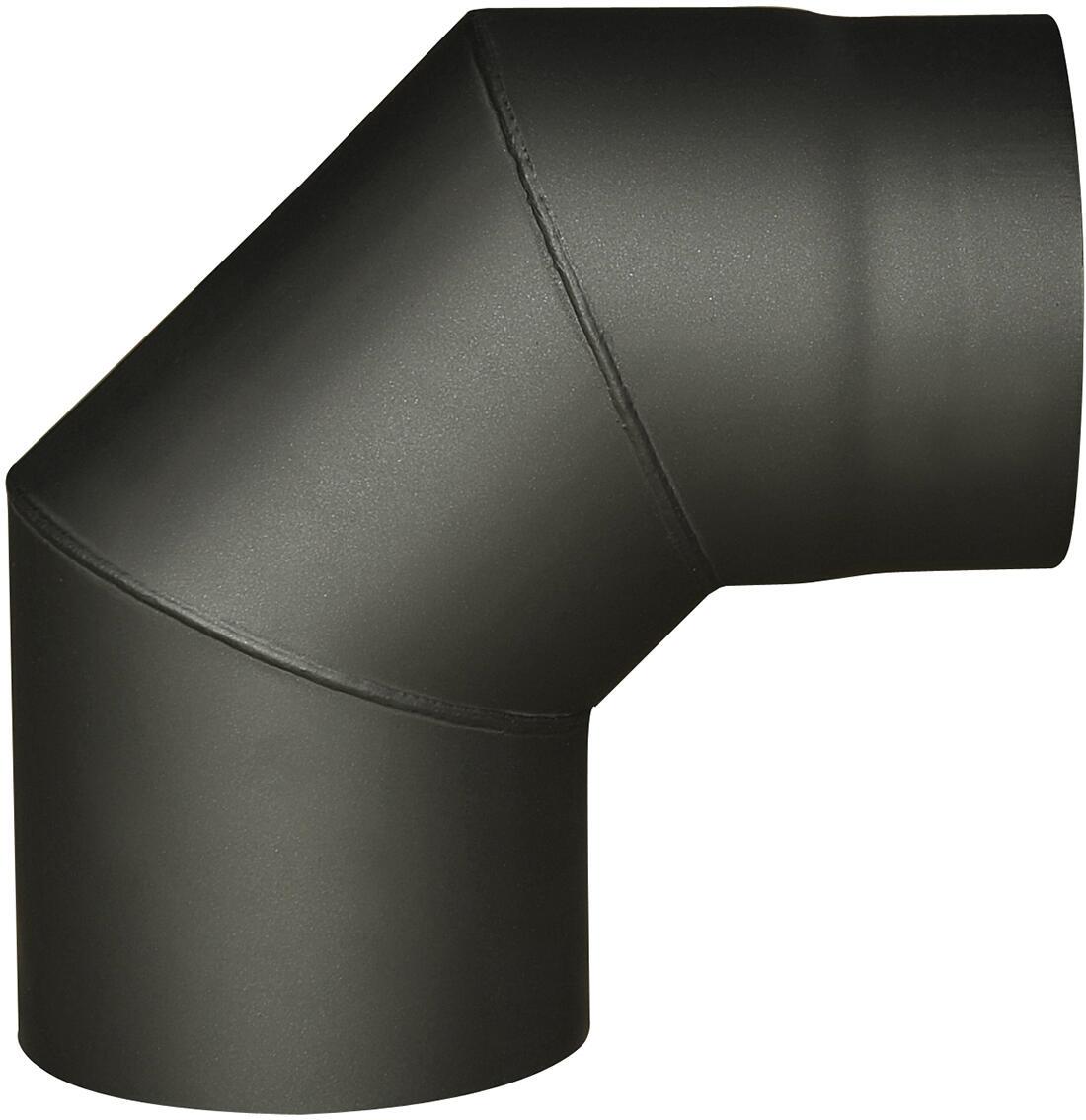 Dymové koleno – dĺžka 125 mm, uhol 90°, hrúbka materiálu 1,5 mm, čierna farba Dymové koleno Eurometal je určené na dymovody kachlí, krbov a kotlov na tuhé palivá. Vyrobené je z veľmi kvalitného plechu s hrúbkou 1,5 mm a disponuje uhlom 90°. Odoláva pritom teplote spalín až do 4