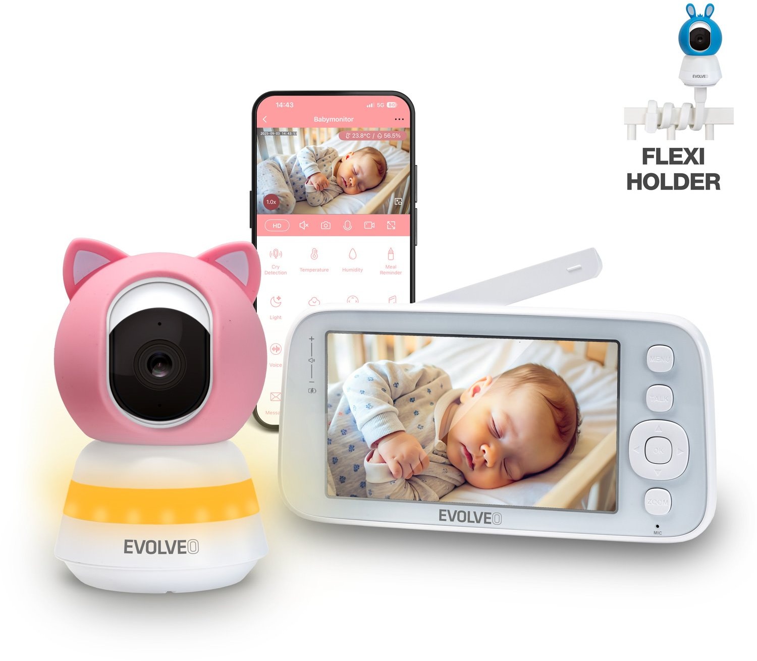 Detská pestúnka – s prenosom obrazu (video), dosah 150 m, prenos zvuku prebieha digitálne, inteligentná pestúnka (s aplikáciou pre Android alebo iOS), s displejom, obojstranný prenos, nočné videnie, detekcia plaču a uspávací režim (uspávanky, rozprávky alebo projekcia), detská jednotka sa napája zo siete a rodičovskú jednotku napája batéria (Li-ion dobíjacia batéria) Detská pestúnka EVOLVEO Baby Monitor N5 zaistí pokojné stráženie vášho dieťaťa doma aj na cestáchEVOLVEO Baby Monitor N5 je spoľahlivá a moderná detská pestúnka, ktorá vám umožní mať vaše bábätko pod