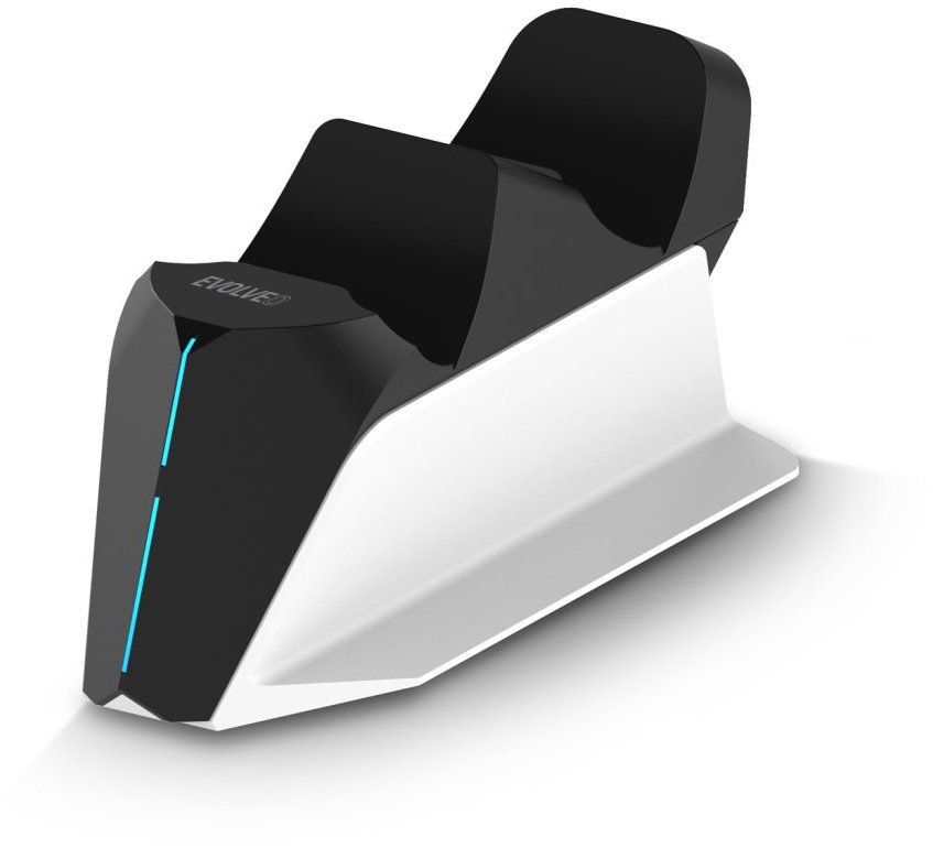 Stojan na herný ovládač – nabíjací, na 2 ovládače PS5 DualSense s napájacím konektorom USB-C, aj na konzolu, LED indikácia nabíjania vrátane prepäťovej ochrany, USB-C v balení, biela farba Nabíjacia základňa a stojan EVOLVEO DockCharge pre dva ovládače PlayStation 5EVOLVEO DockCharge je ideálnym riešením pre každého hráča, ktorý chce mať svoje ovládače DualSense pre PlayStation 5&n
