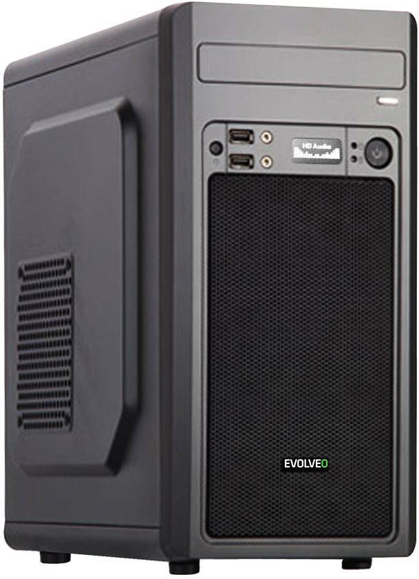 PC skrinka – mATX (Micro ATX), 2× 3,5″, 2× 2,5″, Konektory predného panelu USB 2.0, USB 3.2 Gen 1, 3,5 mm Jack (slúchadlá) a 3,5 mm Jack (mikrofón), max. výška chladiča 140 mm, max. dĺžka grafickej karty 320 mm, bez zdroja, materiál bočnice oceľ, bez podsvietenia Mini tower Evolveo M2 na prvý pohľad zaujme elegantným čiernym dizajnom s perforovanou bočnicou. Počítačová skriňa je určená pre základné dosky podporujúce platformu Intel aj AMD. Skriňa je kompatibil