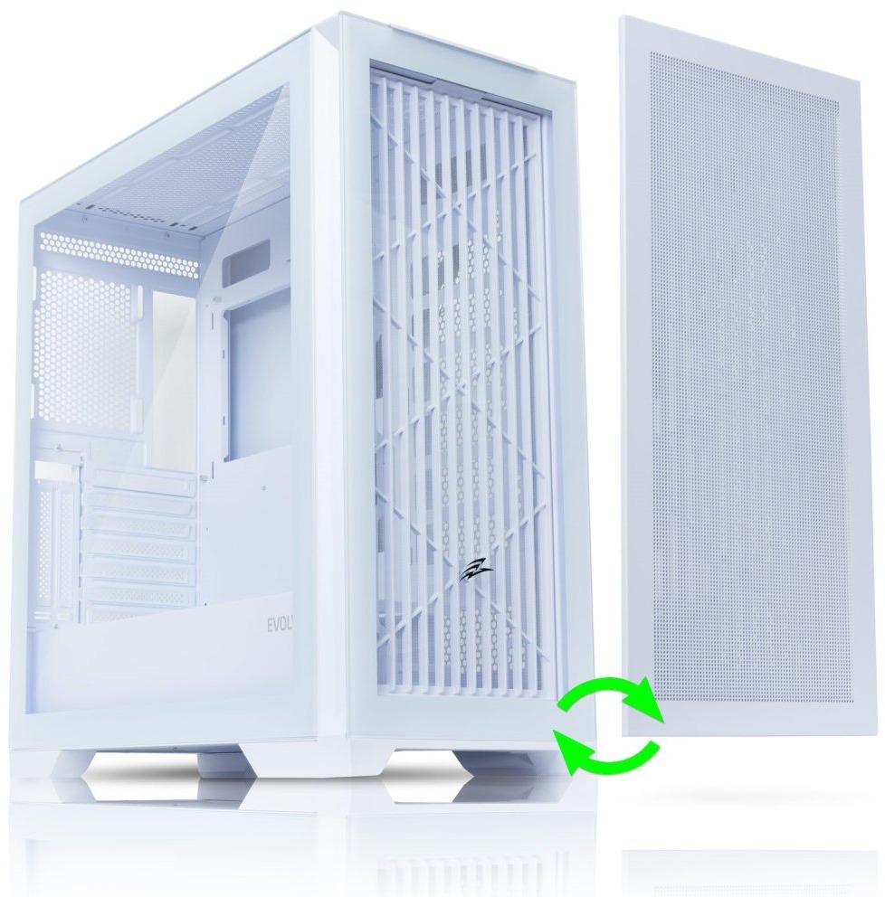 PC skrinka – ATX, mATX (Micro ATX), mITX (Mini ITX) a eATX (Extended ATX), 2× 3,5″, 3× 2,5″, Konektory predného panelu USB 2.0, USB 3.2 Gen 1, 3,5 mm Jack (slúchadlá) a 3,5 mm Jack (mikrofón), max. výška chladiča 164 mm, max. dĺžka grafickej karty 390 mm, bez zdroja, materiál bočnice temperované sklo, bez podsvietenia Atraktívna počítačová skriňa EVOLVEO Ptero Q2W s dvojicou čelných panelovAtraktívne vyzerajúca počítačová skriňa EVOLVEO Ptero Q2W sa stane dokonalým úložiskom vašich nadupaných herných komponentov. Z