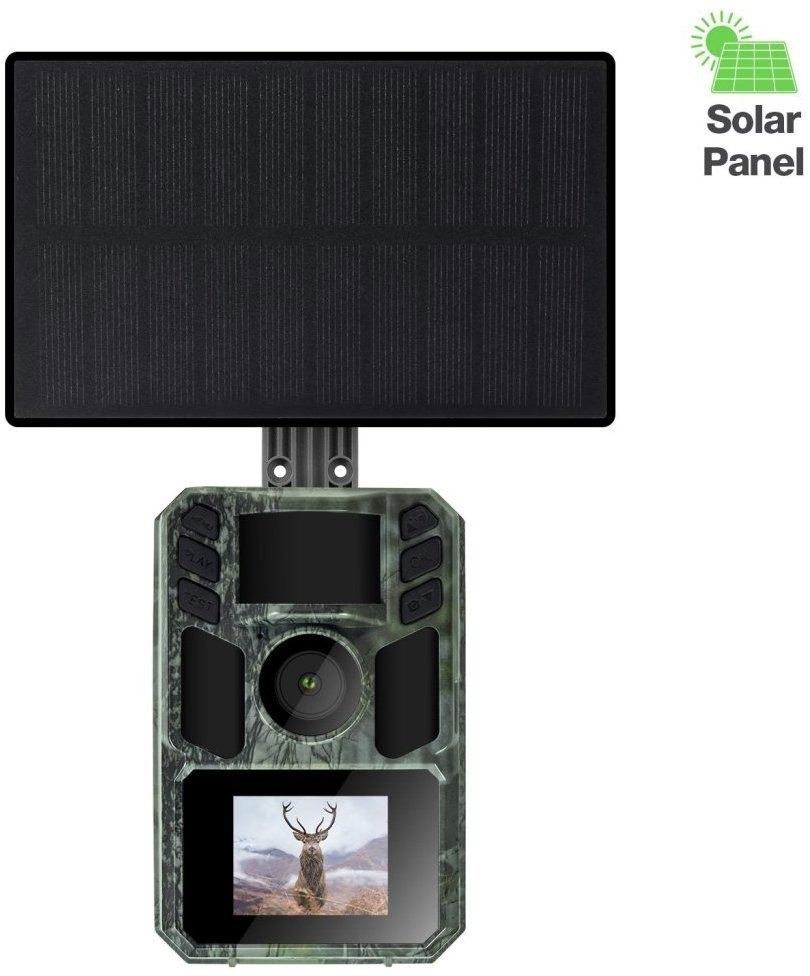 Fotopasca – s dosahom senzora 2 m, maximálna kvalita fotografie 48 Mpx, 90° pozorovací uhol, rýchlosť spustenia 0,6 s, maximálne rozlíšenie videa Full HD (1920 × 1080), IR prísvit 940 nm, displej, s kamerou, manuál, USB kábel a remienok súčasťou balenia, kompatibilná s pamäťovou kartou SD do veľkosti 125 GB, napájanie pomocou akumulátora, krytie IP65, hmotnosť 320 g, rozmery 11,5 × 6,3 × 7,5 cm (V׊×H) EVOLVEO StrongVision Solar A – fotopasca so solárnym napájaním na dlhodobé sledovanieEVOLVEO StrongVision Solar A je univerzálna fotopasca s integrovaným solárnym napájaním, ideálna na monitoring zver