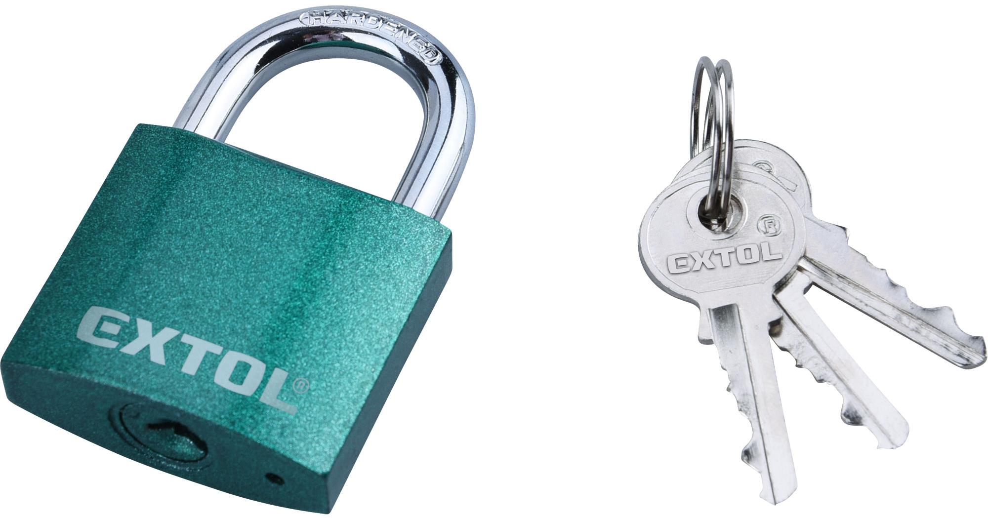 Visiaci zámok – odolný proti korózii, materiál tela liatina, tvrdený strmeň, 3 kľúče súčasťou, šírka strmeňa 20 mm, priemer strmeňa 6 mm, šírka tela 38 mm Visiaci zámok na kľúč EXTOL CRAFT poskytuje ochranu vašim veciam obyčajným otočením kľúča. Tvrdený strmeň zaručí spoľahlivú ochranu proti rezaniu, úderom kladivom a ďalším pokusom o mechanické poškode