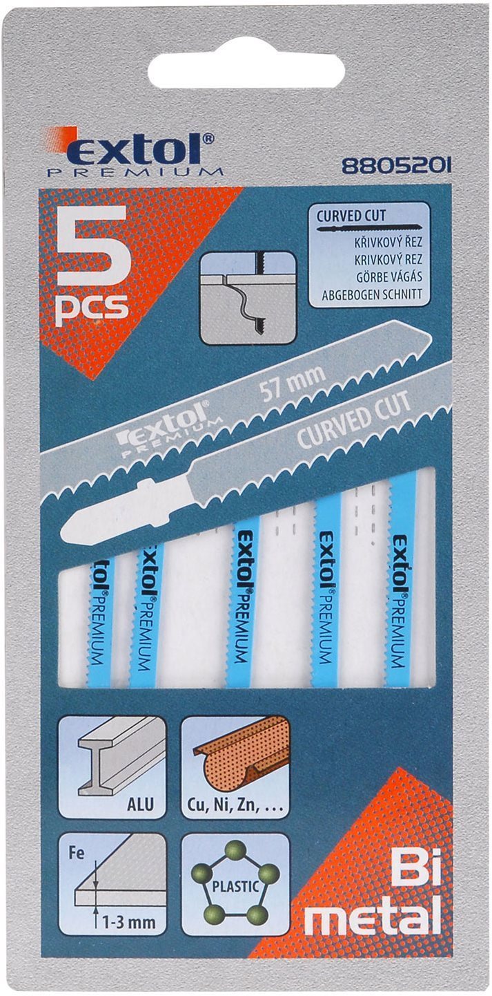 8,38 €EXTOL PREMIUM plátky do priamočiarej píly 5 ks, 57 × 1,5 mm, Bi-metal, 8805201
