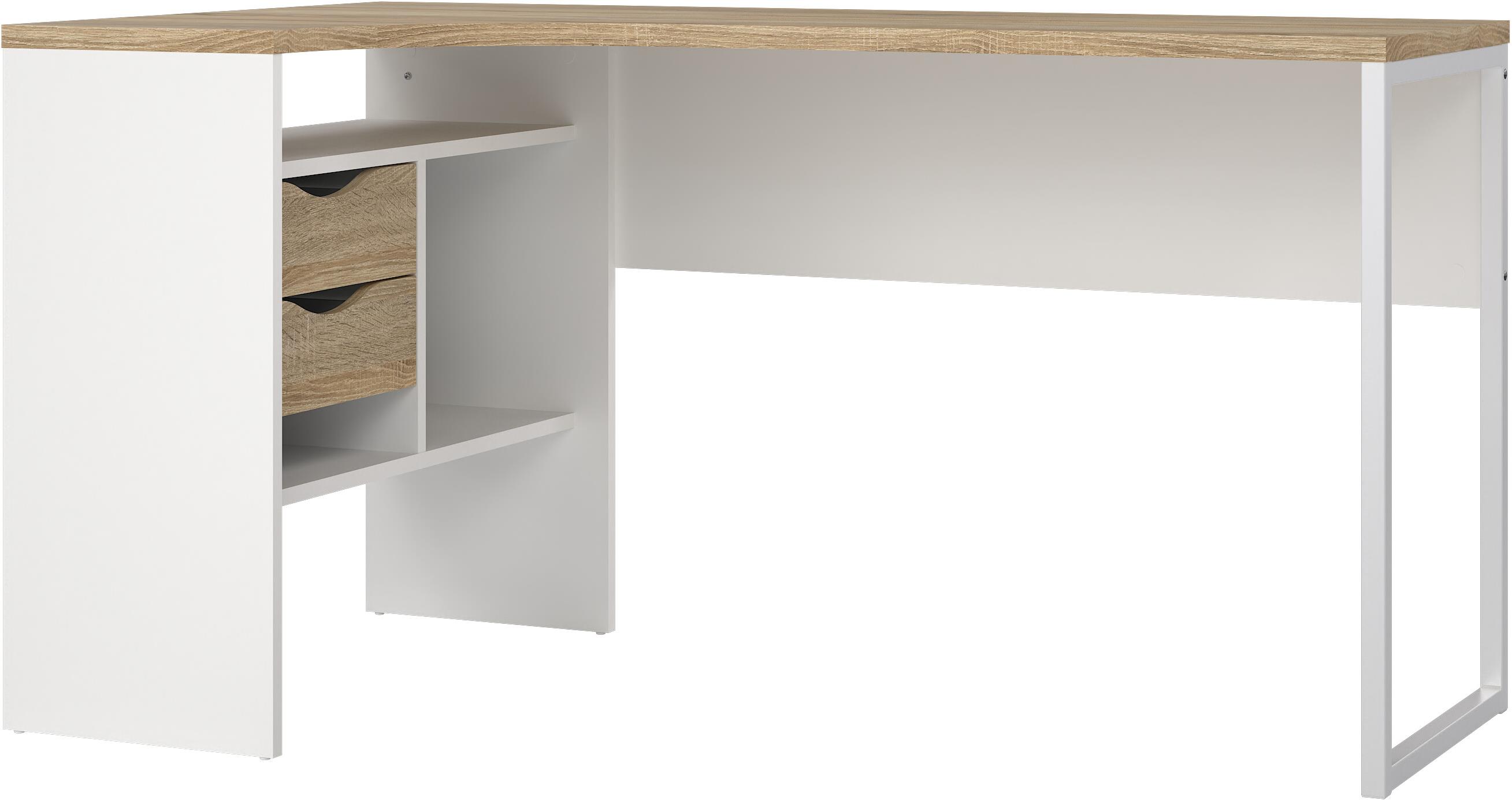 Písací stôl – rohový, s rozmermi 76,8 × 145 × 81 cm (V׊×H), drevená doska , kovová konštrukcia, stôl je s pevnou výškou, so zásuvkami, s policami a s úložným priestorom, celková hmotnosť 39 kg Ak hľadáte veľký komfortný písací stôl do vašej pracovne, siahnite po stole FALCO. Vyznačuje sa praktickým rohovým tvarom, takže si ľahko vytvoríte zázemie pre svoje pracovné činnosti. Pracovný stôl b