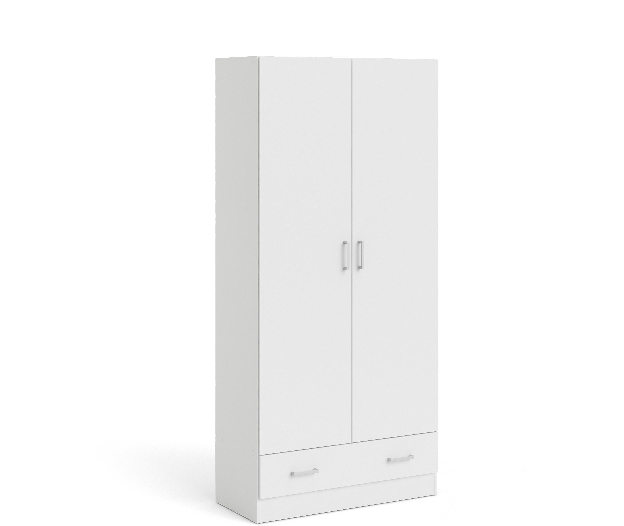 Šatníková skriňa – rozmery 170 × 79,5 × 35,5 cm (V׊×H), materiálom je lamino, 4 police, s dvierkami a so zásuvkami, polohovateľné police, farba biela, matná Pokiaľ vás trápi nedostatok úložného priestoru na vaše oblečenie, mohla by vás zaujať šatníková skriňa Tvilum. Klasické otváracie dvere vám zaistia okamžitý prehľad o uložených veciach. K dispozícii s