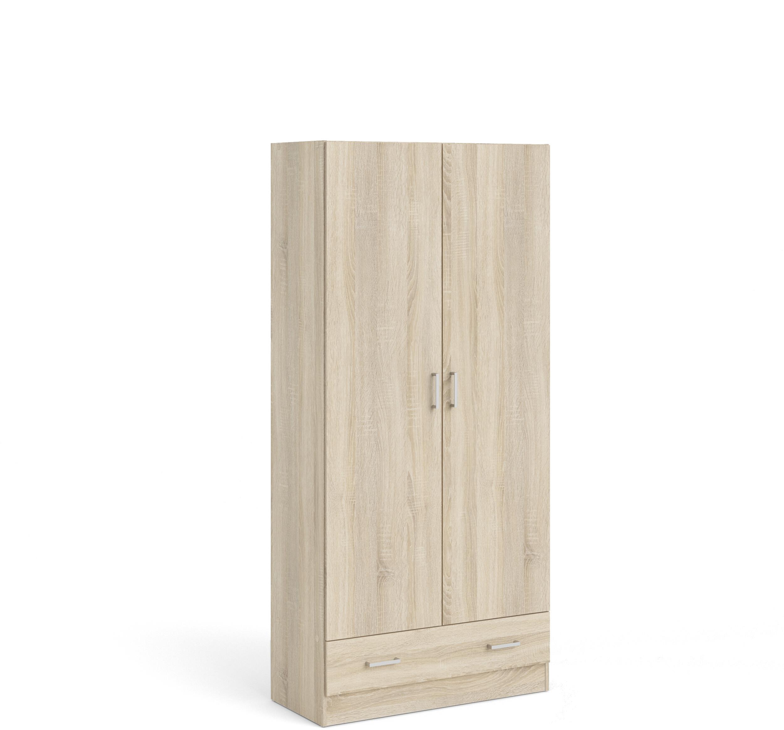 Šatníková skriňa – rozmery 170 × 79,5 × 35,5 cm (V׊×H), materiálom je lamino, 4 police, s dvierkami a so zásuvkami, polohovateľné police, v dekore dub, matná Ak máte doma nedostatok úložného priestoru na svoje oblečenie, zvážte kúpu šatníkovej skrine Tvilum. Skriňa s klasickými otváracími dverami poskytuje okamžitý prehľad o uložených veciach. Vyznačuje sa