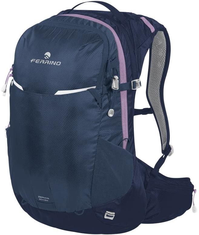 Turistický batoh 20 l – dámsky, materiál polyester, vrecko na cennosti, zapínanie na zips, nastaviteľné popruhy, hrudný pás, bedrový pás, vystužené popruhy, pútko na zavesenie a pútka na palice a cepíny, reflexné prvky, priedušná zadná stena, vodoodolná úprava, kompatibilný s vodným rezervoárom, píšťalka, integrovaný pršiplášť batoha a karabína na kľúče, z recyklovaného materiálu, hmotnosť 0,87 kg, modrá farba Univerzálny batoh Ferrino Zephyr je vhodný na všetky aktivity, kde je potrebný pohodlný malý batoh. Či už sa chystáte na jednodňovú túru, prechádzku po miestnom lesoparku, na bicykel alebo napríklad n