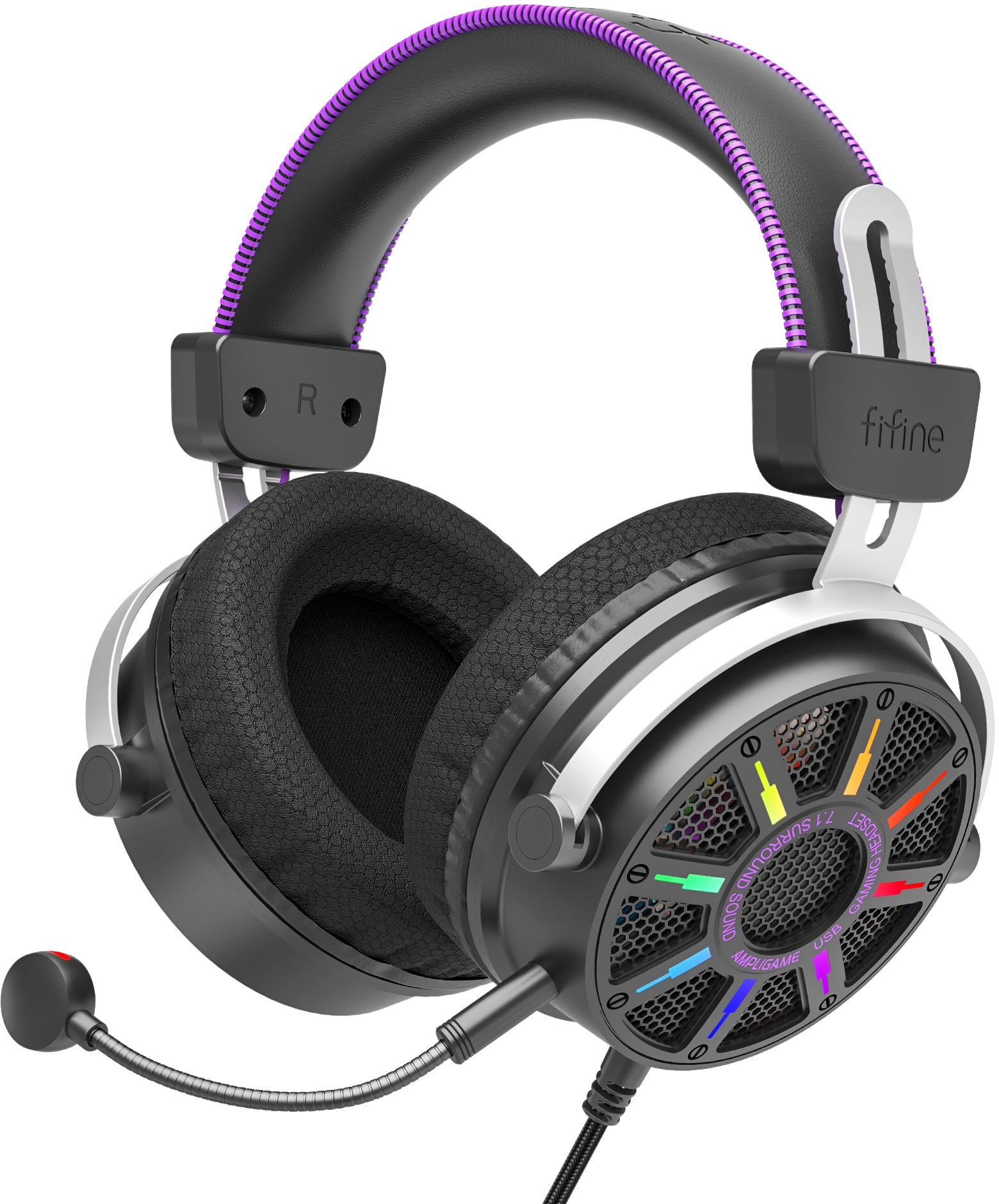 Herné slúchadlá – káblové, s mikrofónom, cez hlavu, okolo uší, otvorená konštrukcia, USB-A, k PC, PlayStation 4 a PlayStation 5, herný režim, priestorový zvuk 7.1, s ovládaním hlasitosti, frekvenčný rozsah 20 – 20000 Hz, menič 53 mm, kábel 2,3 m FIFINE H19 sú drôtové herné slúchadlá s mikrofónom a otvorenou konštrukciou, ktorá prispieva k prirodzenejšej zvukovej reprodukcii a lepšej priedušnosti pri dlhšom používaní. Pripojenie zaisťuje USB-A