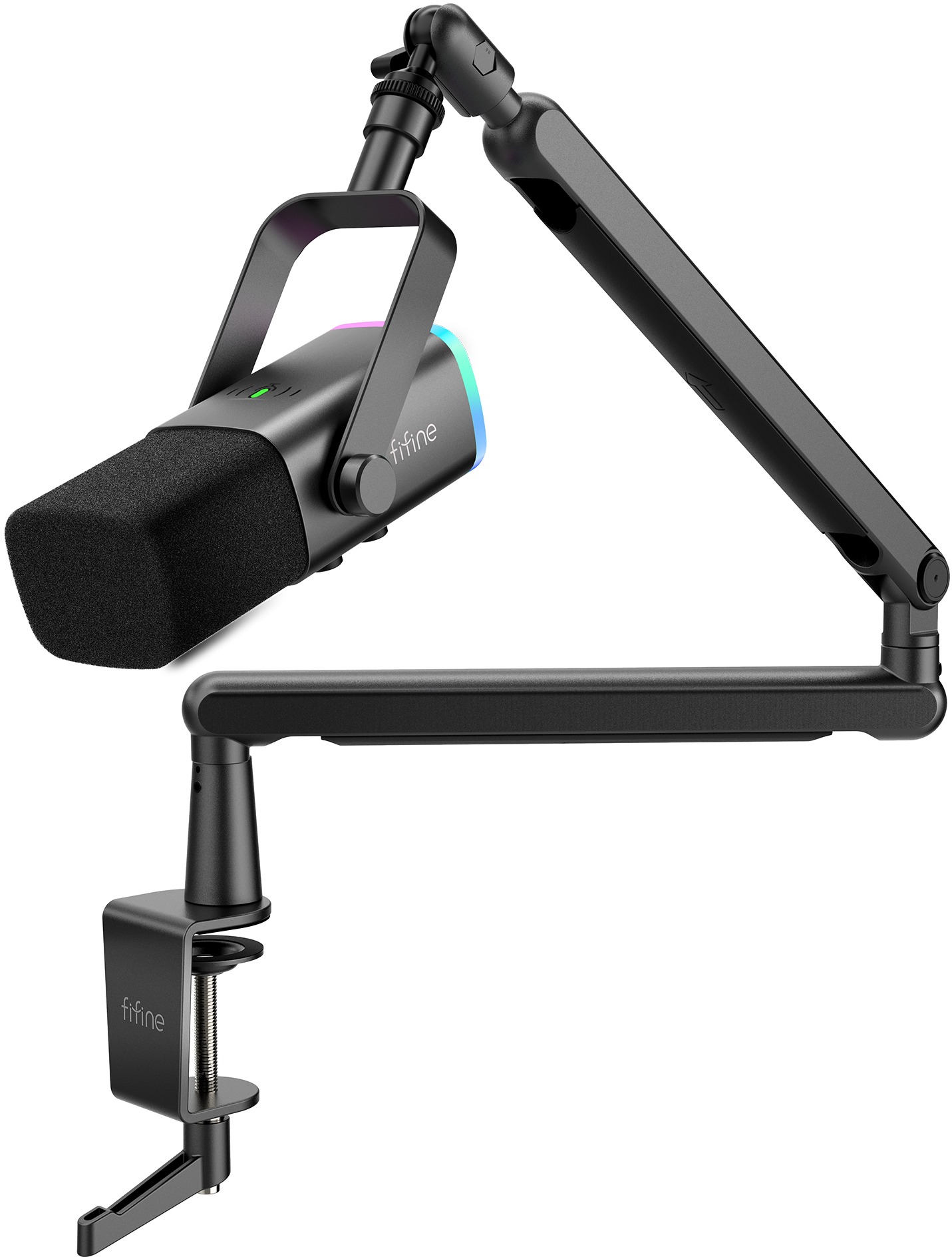 Mikrofón – stolný, vhodný na PC, kameru, hernú komunikáciu, štúdiové použitie, dynamický, smerové snímanie, frekvencia od 50 do 16000 Hz, tlačidlo Mute, ovládač Gain a ovládač Volume, slúchadlový výstup a RGB podsvietenie, pop filter, rameno a stojanček v balení Dynamický mikrofón FIFINE TAM8 pre hráčov PC hierDynamický USB mikrofón FIFINE TAM8 perfektne poslúži na nahrávanie, streamovanie, ale predovšetkým na hranie hier. Externý mikrofón eliminuje zvuk úder