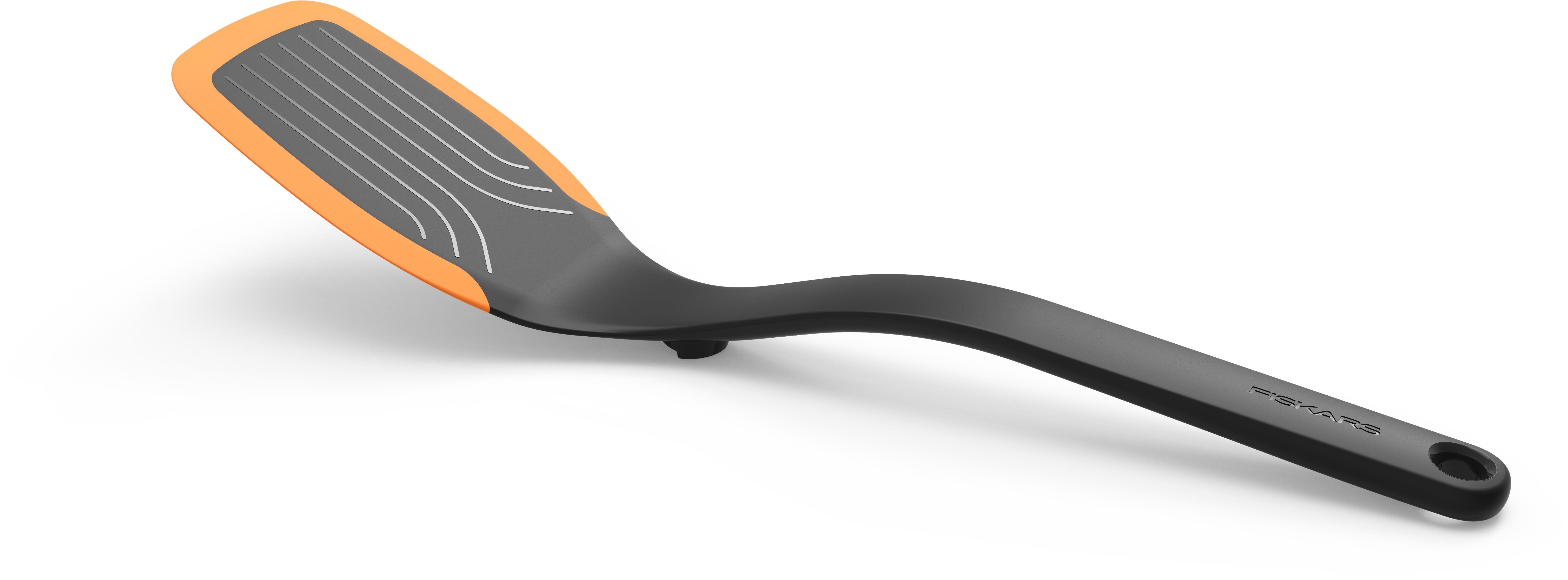 Obracačka – plastová, vhodná na nepriľnavý povrch a do umývačky riadu, s okom na zavesenie Lopatka FISKARS Functional Form je ideálna na obracanie pokrmov. Vyrobená je z veľmi kvalitného plastu a doplnená silikónovým okrajom, ktorý zamedzí poškriabaniu povrchu riadu. Vďaka očku na konci ruk