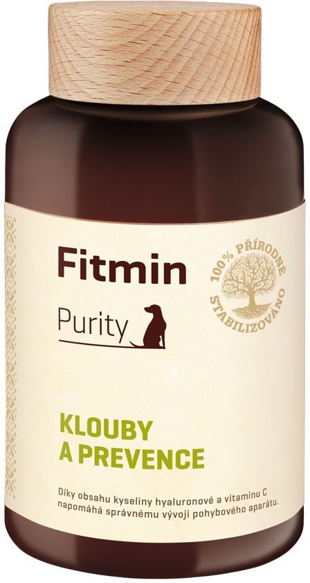 Doplnok stravy pre psov – podporuje správny vývoj pohybového aparátu najmä u rýchlo rastúcich mladých psov veľkých a obrích plemien, ktorí zatiaľ nemajú závažný problém s pohybom, možno ho používať dlhodobo alebo ako preventívnu kúru u dospelých psov malých, stredných a veľkých plemien, u psov aktívnych, s nadváhou Fitmin Purity Kĺby a prevencia je doplnkové krmivo pre psov, ktoré je určené aj pre športových psov alebo psíkov, ktorí majú sklony k problémom s kĺbmi. Vďaka obsahu kyseliny hyalurónovej, vitamínu C