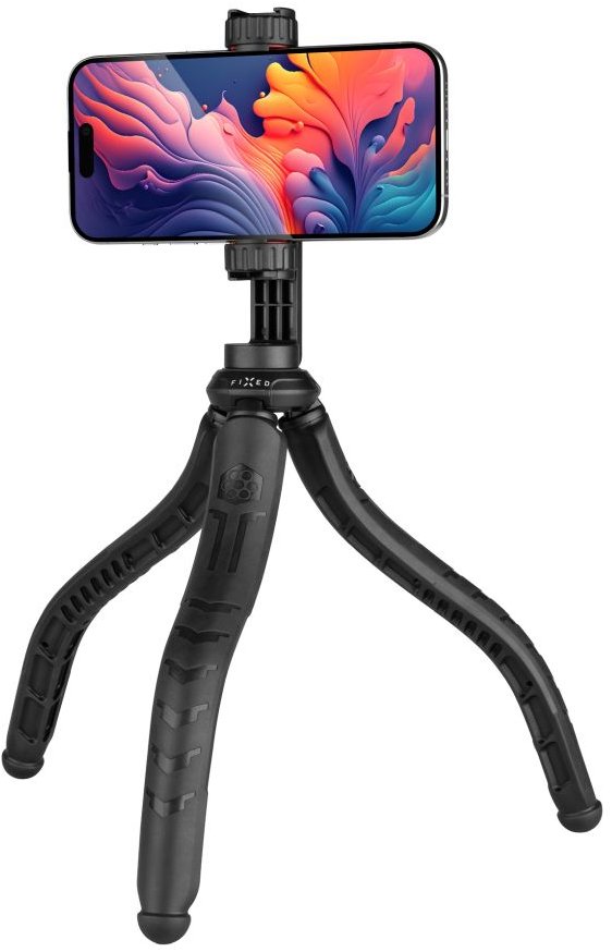 Ministatív – na mobil a digitálny fotoaparát, 1/4″ statívový závit, bez statívovej hlavy, materiál plast, maximálna výška 33,5 cm, zaťaženie až 2 kg, hmotnosť iba 0,265 kg, držiak na mobil súčasť balenia, čierna farba FIXED…