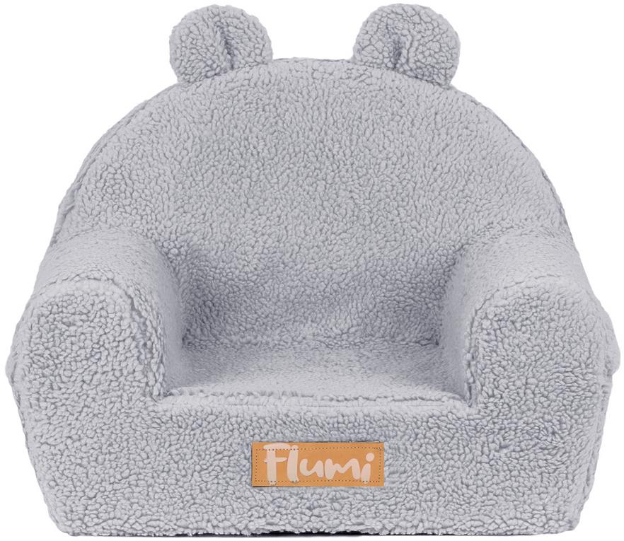 Detské kreslo – s vreckom, materiál tkanina, textil, pena a plyš, matná povrchová úprava, jednofarebné, zdravotne nezávadný materiál,, rozmery 42 × 55 × 33 cm (V׊×H), hĺbka sedu 24 cm, sivá farba Detské kreslo Flumi zaistí pohodlie a príjemné hranie najmenším. Detské kresielko Flumi Boucle v sivej farbe je na dotyk veľmi príjemné a je doplnené milými uškami na operadle. Vnútorná časť kresla je