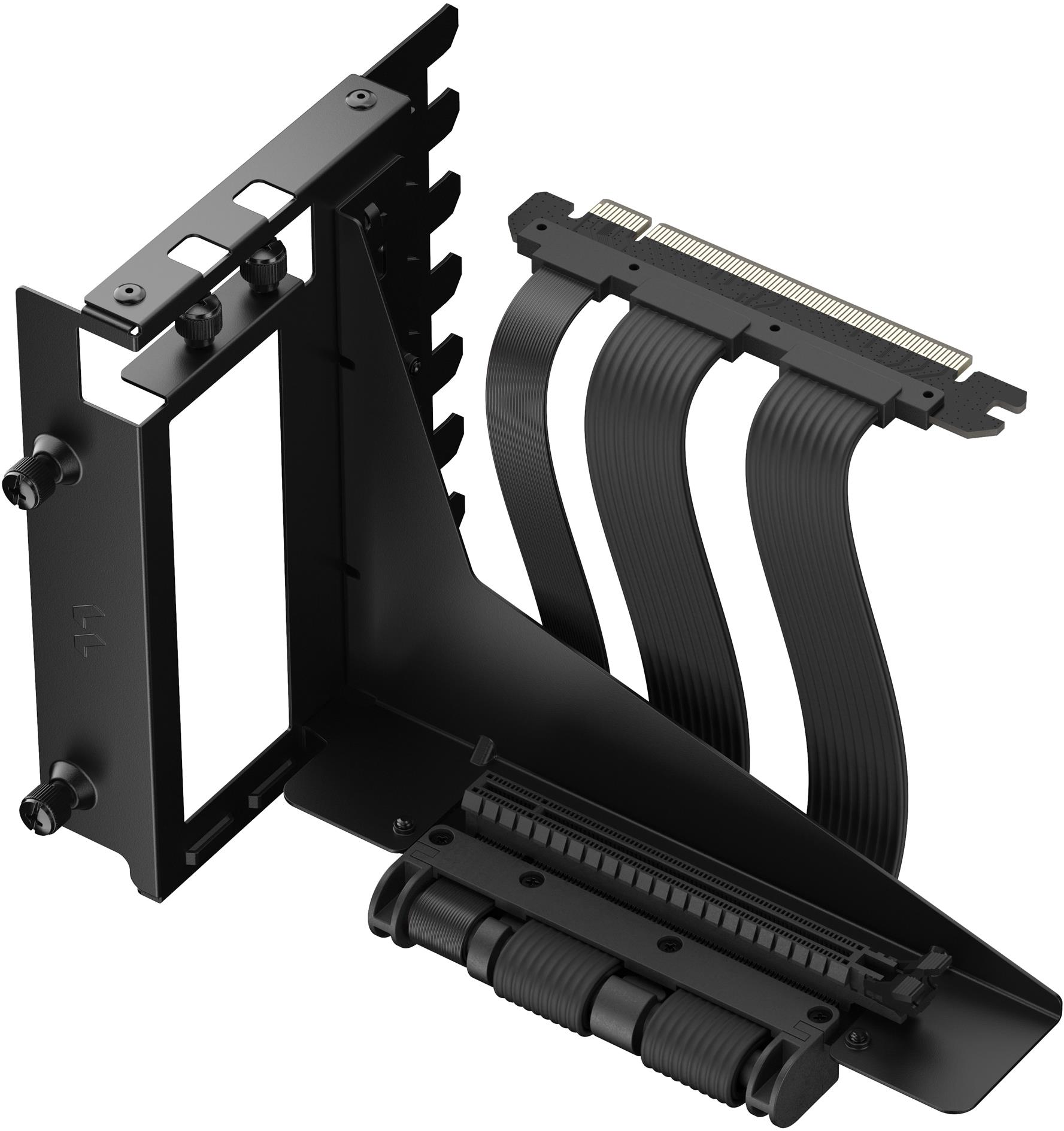 Držiak grafickej karty – vertikálny, prichytenie na skrutky, materiál kov, rozmery 124 × 144 × 196 mm (Š×V×H), montážne skrutky a riser kábel súčasťou balenia, čierna farba, hmotnosť 300 g Fractal Design Flex 2 je predĺženie PCIe 4.0 ×16 slotu na osadenie grafickej karty do vertikálnej pozície. Je určené na skrine bez deliacich priečok medzi slotmi, vrátane modelov North, Focus 2, Defin