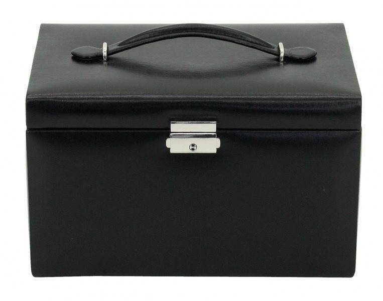 Šperkovnica – zo syntetickej kože, kufrík, uzamykateľná, 4 poschodia, 7 zásuviek, rozmery 24 × 15 × 16 cm (V׊×H), čierna farba Značka Friedrich Lederwaren predstavuje pôvodnú a luxusnú nemeckú kvalitu. Svetovo preslávená značka má perfektný dizajn a zmysel pre detail. Na ich výrobu sa používajú len tie najlepšie syntetické a