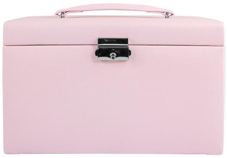 Šperkovnica – zo syntetickej kože, kufrík, so zrkadlom, s uchom, s vekom, 4 poschodia, 3 zásuvky, rozmery 16 × 20,5 × 15 cm (V׊×H), ružová farba Šperkovnica FRIEDRICH LEDERWAREN slúži ako výborné úložisko na všetky vaše klenoty a doplnky. Vďaka použitiu syntetickej kože má sofistikovaný vzhľad a jednoducho sa udržiava. Na kufríkovej šperkovnic