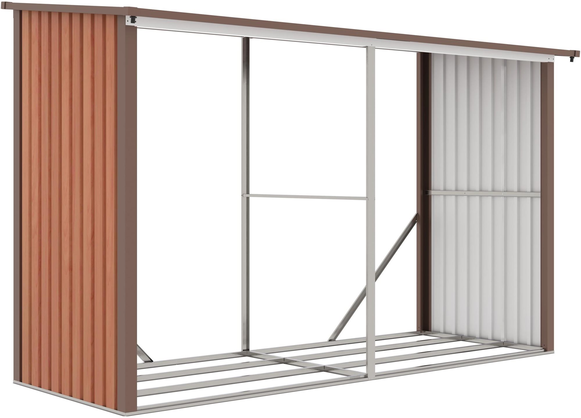 Dreváreň – vonkajšia, na 5,7 m³ dreva, kovová, rozmery 190 × 302 × 119 cm (V׊×H), hmotnosť 30 kg, hnedá farba Prístrešok na drevo G21 WOH 682 s objemom 5,7 m3je stabilným, bezúdržbovým a estetickým riešením na uskladnenie dreva pri rodinnom dome, chate alebo záhradnom domčeku. Kľúčové vlastnosti drevníka G21