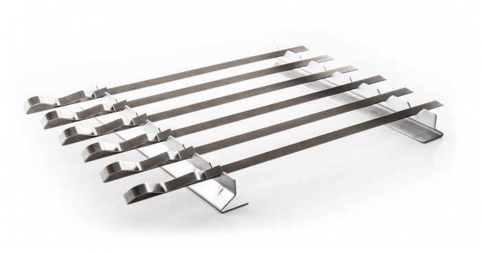 Grilovacia sada – 8 ks, v balení napichovacia ihla, materiál oceľ, antikorová rukoväť Grilovacia sada G21 vhodná na prípravu špízov a kebabu bude vyhľadávaným vybavením pri každej vašej grilovacej akcii. Set sa skladá zo šiestich grilovacích ihiel a dvoch stojančekov. Ihly aj stojan sú