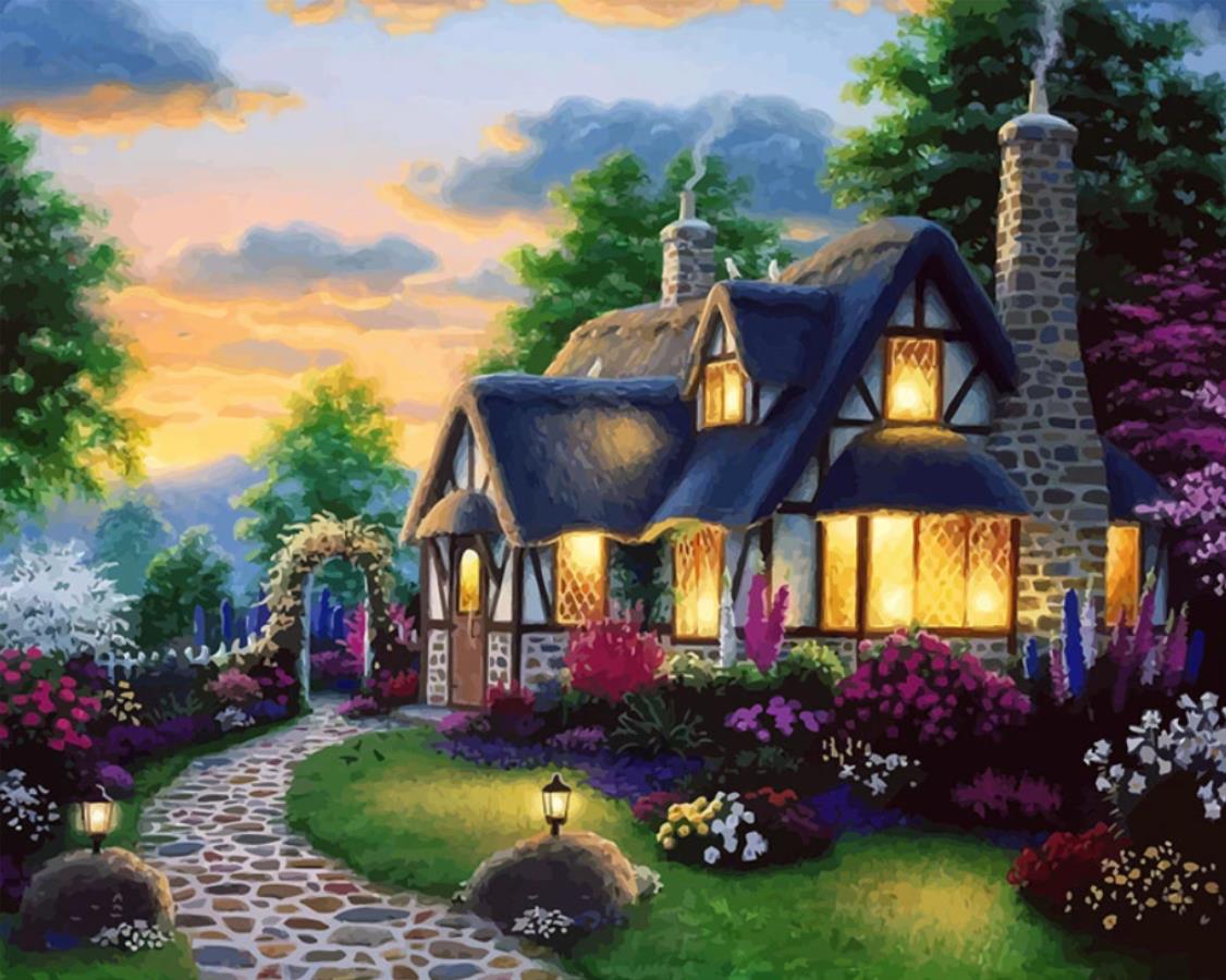 Maľovanie podľa čísel – tematika mestá a miesta, plátno, súprava štetcov, farby a vymaľovaný vzor súčasťou balenia, rozmery 50 × 40 cm (V׊) Kľúčové vlastnosti maľovania podľa čísiel Gaira Dom v kvetinovej záhrade M992172 Maľovanie…