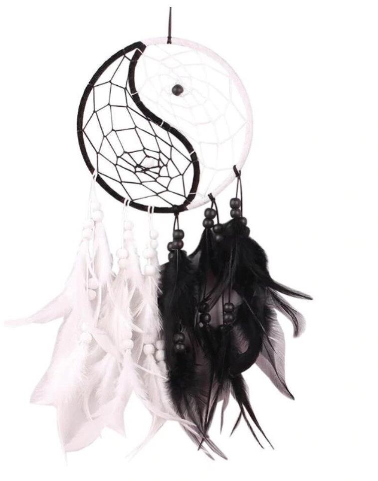 Lapač snov – vyrobené z materiálu: perie, s výškou 500 mm, so šírkou 300 mm, biela a čierna farba