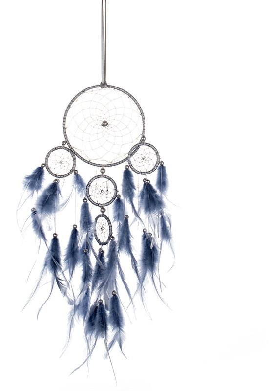 Lapač snov – vyrobené z materiálu: perie, s výškou 600 mm, so šírkou 300 mm, sivá farba