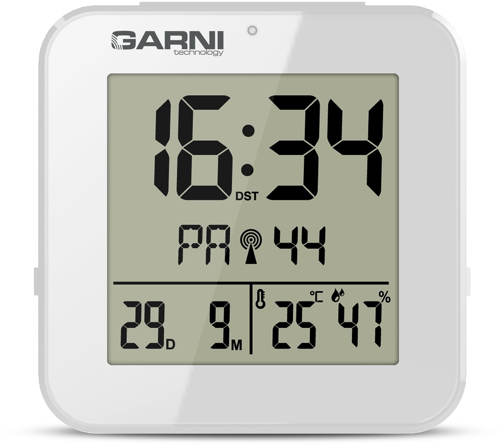 Budík – digitálny, batériové napájanie, napájanie cez 2 tužkové (AA) batérie, 12-/24-hodinový formát času, čas riadený rádiovým signálom DCF-77, časová zóna, nočné osvetlenie, opakované budenie – Snooze, podsvietenie displeja a meranie relatívnej vlhkosti Na priestrannom LCD displeji s rozmermi 52 × 50 mm uvidíte presný čas riadený signálom DCF-77, dátum, skratku dňa v týždni, vnútornú teplotu a relatívnu vlhkosť. Inteligentný budík GARNI 138W ponúka m