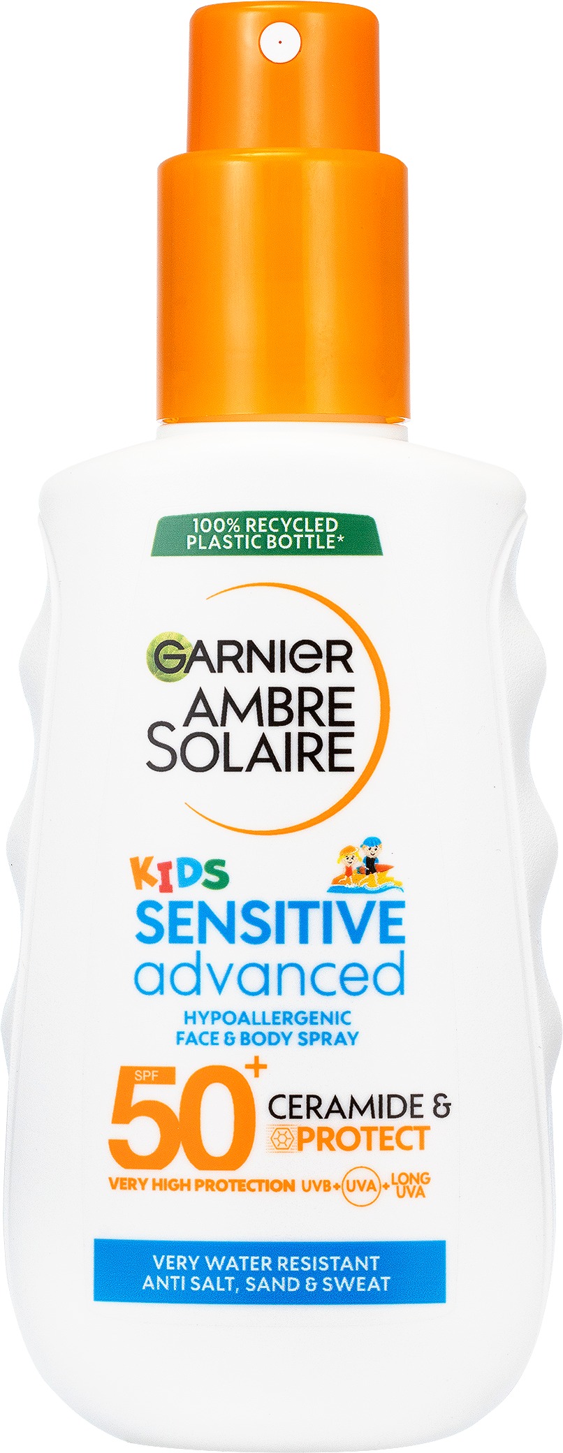 Sprej na opaľovanie – Pre deti, ochranný faktor 50, na telo, na atopickú, ekzematickú, citlivú, mastnú, normálnu, zmiešanú, suchú a zrelú pokožku, objem 150 ml Sprej GARNIER Ambre Solaire s ochranným faktorom 50+ je určený na ochranu citlivej detskej pokožky. Mlieko poskytuje širokospektrálny štít proti UV žiareniu, je vodoodolné a odolá aj potu, piesku a ch