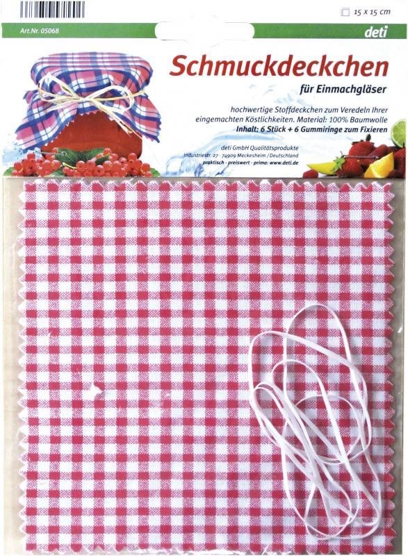 Príslušenstvo na zaváranie – bavlnená, na riad, vhodná na sklo, rozmery 15 × 15 cm (Š×D), biela a červená farba, geometrický motív, 6 ks v balení Kľúčové vlastnosti produktu Gastro Okrasné dečky sukienka na zaváracie…