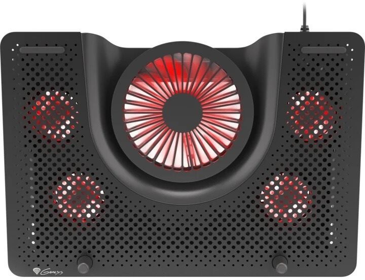 Chladiaca podložka pod notebook – aktívne chladenie, do veľkosti 17,3″, 1 ventilátor priemeru 140 mm, maximálne otáčky ventilátora 2800 RPM, 1 USB port, polohovateľná, červené podsvietenie, materiál kov a plast, rozmery 55 × 400 × 280 mm (V׊×H), hmotnosť 1050 g, čierna farba Prehrieva sa vám notebook pri zvýšenom výkone? V tom prípade pre vás bude ideálna chladiaca podložka pod notebook Genesis. Podložku oceníte pri hraní aj práci v náročnejších programoch. Vďaka takzvané