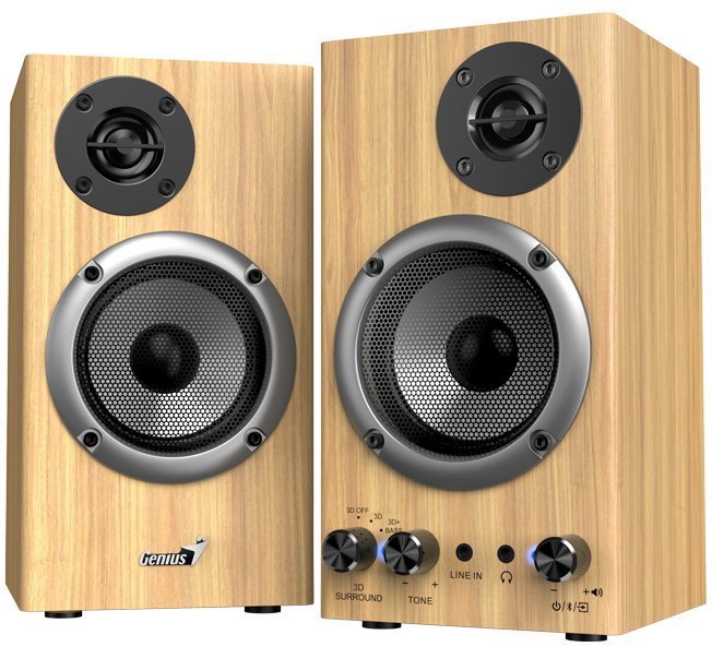 Reproduktory – aktívna reprosústava, 2.0 s výkonom 20 W RMS, frekvenčný rozsah od 40 do 20000 Hz, 2-pásmové, 3,5 mm Jack, AUX, Bluetooth, s Hi-Res audiom, s mikrofónom, podpora AAC, aptX a SBC, ovládanie cez zariadenia s OS iOS alebo Android Reproduktory Genius SP-HF520BTReproduktory Genius SP-HF520BT prinášajú obojsmerný 3D stereofónny zvuk v elegantnom drevenom vyhotovení a sú ideálnou voľbou na počúvanie hudby, sledovanie filmov aj hra