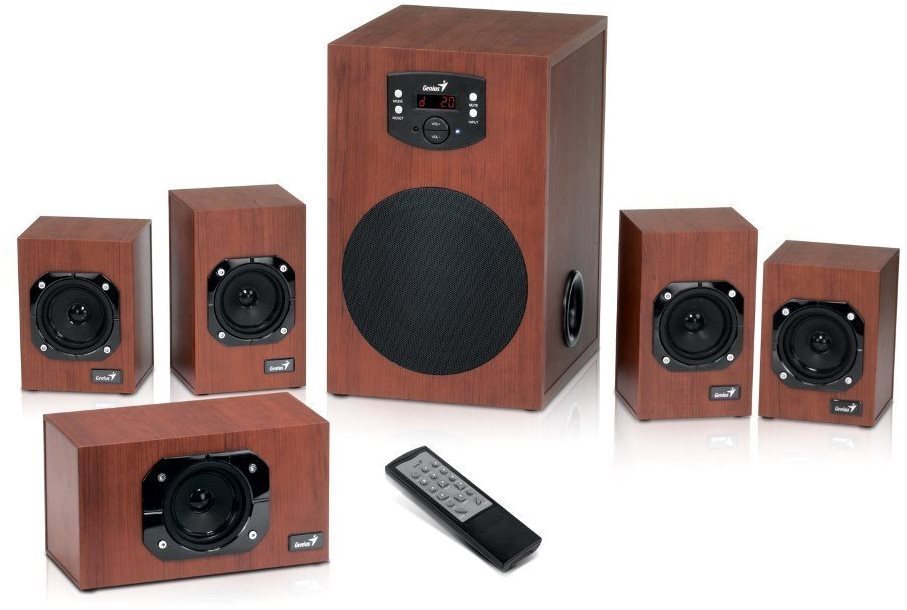 Reproduktory – aktívna reprosústava, 5.1 s výkonom 125 W, frekvenčný rozsah od 40 do 20000 Hz, 3,5 mm Jack, RCA (cinch), displej, diaľkový ovládač Chceli by ste si preniesť atmosféru z kina do svojho domova? Nepochybne sa vám zapáčia 5.1-kanálové reproduktory Genius. Ako aktívne reproduktory sú vybavené integrovaným zosilňovačom, takže môžete po