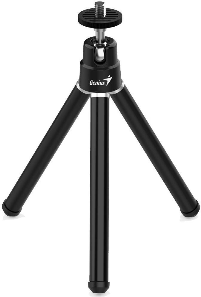 Ministatív – na digitálny fotoaparát, 1/4″ statívový závit, guľová hlava, transportná výška 15,5 cm, maximálna výška 25,1 cm, zaťaženie až 0,5 kg, hmotnosť iba 0,069 kg, čierna farba Genius Tripod 1 je kompaktný mini statív na webkamery, smart telefóny a fotoaparáty so 1/4″ závitom, ktorý vám zaistí ostré fotografie a stabilne nahrané videá. Statív má tri nožičky a guľovú hlavu, k