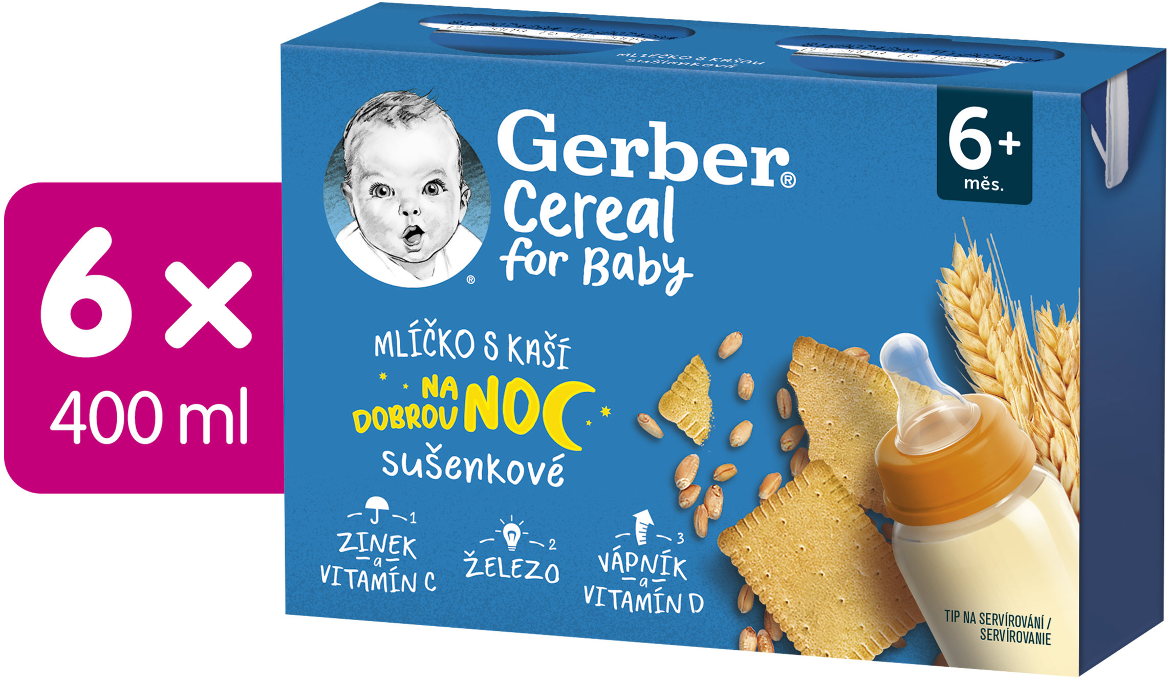 Príkrm – pre deti od 7 mesiace, bez konzervantov a umelých farbív, pridané vitamíny a minerály, na noc, bez palmového oleja, 12 ks v balení Tekutý príkrm GERBER Cereal mliečko s kašou sušienkové Na dobrú nocCereal mliečko s kašou Gerber je vhodné pre maškrtníkov od ukončeného 6. mesiaca. Hotový mliečno-obilný príkrm je vyrobený z kvalitné