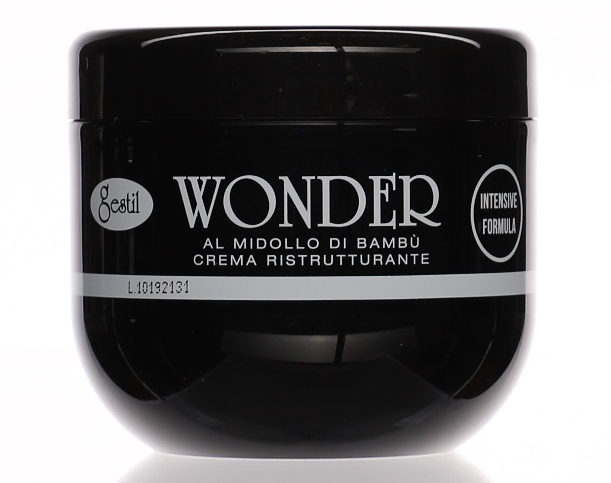 Maska na vlasy – na jemné a poškodené vlasy, účinok: hydratačný, regeneračný, posilňujúci, pre lesk, uľahčujúci rozčesávanie a uhladzujúci, objem 300 ml Gestil Wonder Crema Ristrutturante je regeneračný zábalový vlasový krém špeciálne navrhnutý na vlasy s poškodeným vláknom, zničené farbením, melírovaním, trvalou, alebo vplyvom smogu. Obsahuje výťažok
