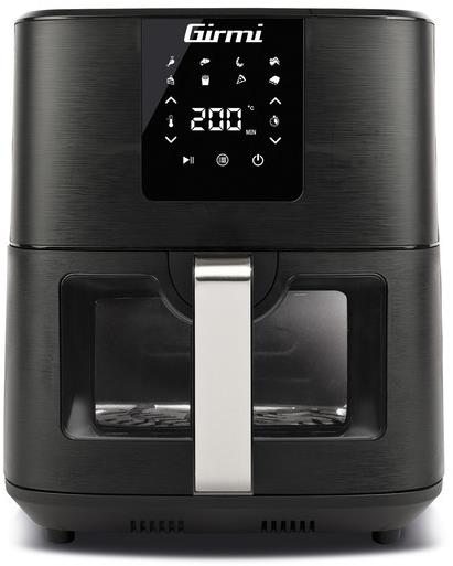 Teplovzdušná fritéza – digitálne ovládanie, nastaviteľná teplota od 40 do 200 °C, s nepriľnavým povrchom, s displejom, s ochranou proti prehriatiu, časovač, regulácia teploty a automatické programy, 8 programov, plech súčasťou, príkon 1700 W, objem nádoby 9 l s nepriľnavým povrchom, hmotnosť 5 kg, rozmery 34 × 29,5 × 41 cm (V׊×H), čierna a sivá farba Teplovzdušná fritéza Girmi vám pomôže pripraviť obľúbené pochúťky s čo najmenším množstvom tuku. Nádoba fritézy disponuje nadštandardným objemom 9 l. Vďaka tomu si pripravíte až 2,4 kg obľúbených pokr