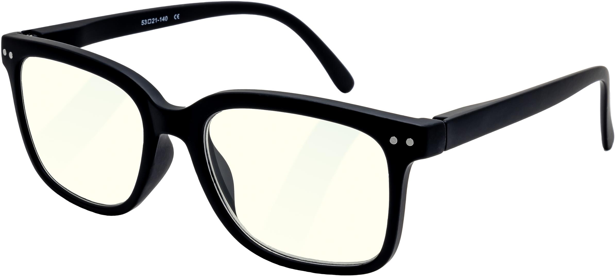 Okuliare na počítač – unisex, na počítač, ochrana proti modrému svetlu 95 %, obdĺžnikové, materiál rámu: plastový, číra farba skiel, čierna farba rámu, UV ochrana UV400 a UVB, v balení handrička na čistenie a mäkké…