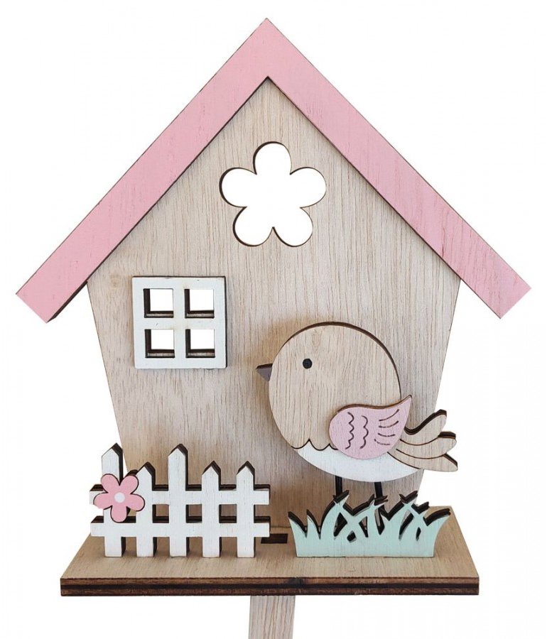 Veľkonočná dekorácia –, materiál drevo, rozmery 44 × 13 × 5,5 cm (V׊×D), hnedá a ružová farba Zapichovací dekorace Goba v jarního domečku je vyrobena z kvalitního MDF dřeva a vyniká kombinací přírodního odstínu a růžové a bílé barvy. S rozměry 44,0 × 13,0 × 5,5 cm se skvěle hodí jako veli