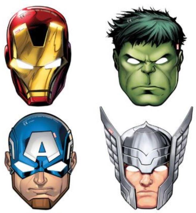 Karnevalová maska – pre deti aj dospelých, pre chlapcov aj dievčatá, motív superhrdinovia, príležitosť: karneval a halloween, materiál kartón Kľúčové vlastnosti karnevalovej masky GoDan Maska Avengers 6 ks Maska na karneval GoDan je prispôsobená ako deťom, tak dospelým Je určená pre všetkých od 14 rokov Perfektná pre doplnenie vzhľadu super
